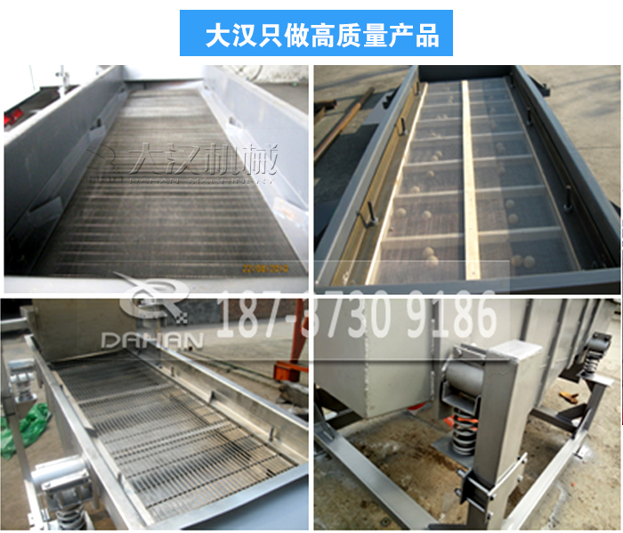 大漢提供最專業的技術支持,免費幫您設計生產線,提高篩分量。同時免費提供維修知識培訓和保養指導,保證用戶使用過程中安全性,提高直線振動篩的產品壽命。