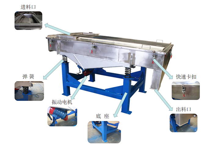 大型直線振動篩的篩箱采用高強度鋼板焊接結構,確保在大負載下依然保持穩定。振動頻率一般為960~1450次/分鐘,振幅在4~8mm之間,可根據物料特性調節,以實現最佳篩分效果。篩網是核心部件之一,其類型包括編織網、沖孔網、聚氨酯篩網、不銹鋼篩網等。針對高磨損物料常選用聚氨酯篩網,而對衛生要求高的行業則多采用304或316L不銹鋼篩網。驅動系統采用雙振動電機反向同步驅動方式,使篩箱產生直線往復運動,從而推動物料向前直線運動,實現均勻分級。