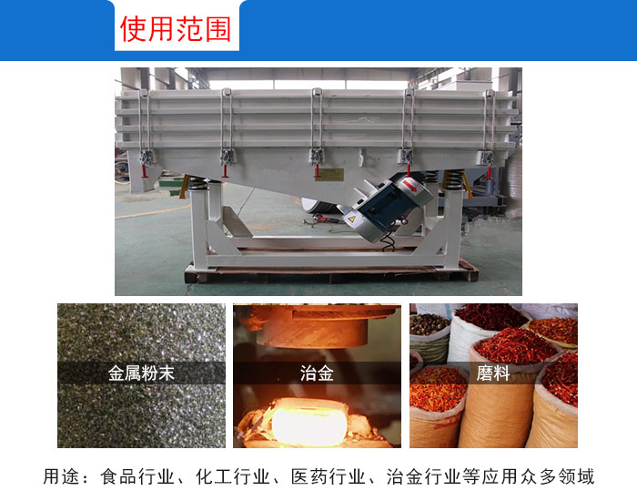 雙層直線振動篩安裝了兩層篩網,可以三分出三種規格物料,廣泛適用于化工、食品、塑料、醫藥、冶金、玻璃、建材、糧食、化肥、磨料、陶瓷等行業中干式粉狀物料的篩分。