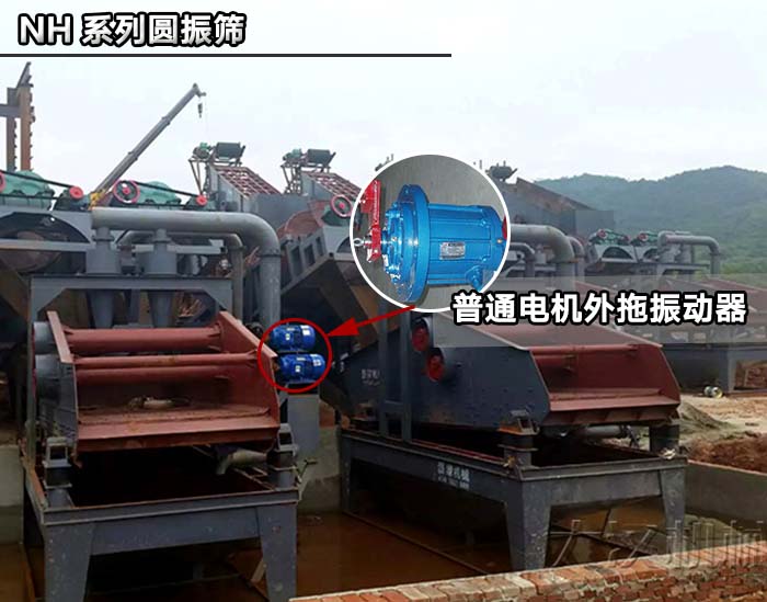 NH系列圓振篩是利用普通電機(jī)外拖振動(dòng)器,使篩體沿振力方向作周期往復(fù)性振動(dòng),物料在篩面上作圓運(yùn)動(dòng),從而達(dá)到篩分目的。