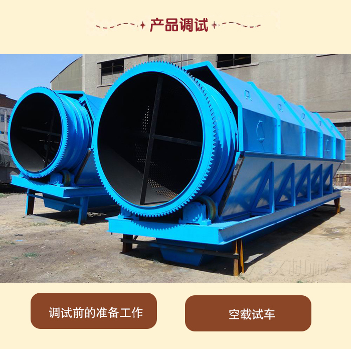 2、啟動設備運轉(zhuǎn)4--6小時,觀察滾筒篩運行情況,若發(fā)現(xiàn)異常聲響或其它現(xiàn)象,應及時停機檢查,找出原因,排除故障。