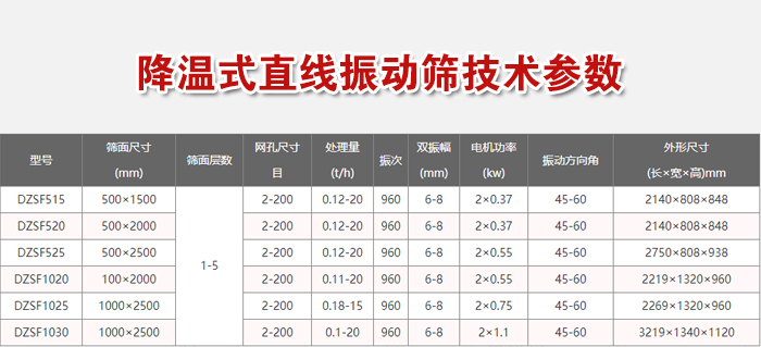 降溫式直線振動(dòng)篩技術(shù)參數(shù)