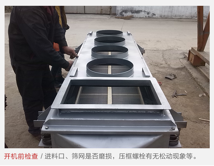 用手與眼同時(shí)去檢查兩臺(tái)振動(dòng)電機(jī)與電機(jī)板鏈接的螺栓是否松懈;