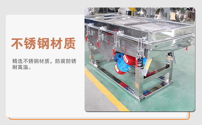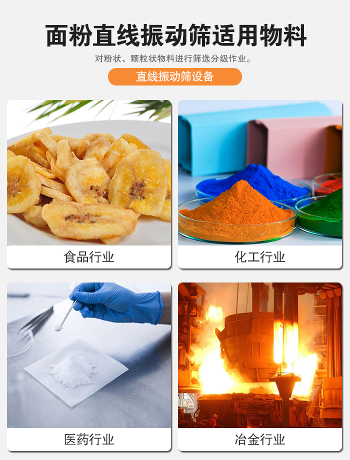 面粉直線振動篩是一種外觀為長方形的振動篩,采用304或316材質(zhì)的不銹鋼精制而成,具有防腐、防銹、耐高溫的特點,適用于食品、醫(yī)藥行業(yè)粉狀、顆粒狀的物料的篩選、分級、除雜,是一款處理量大、篩分效率高的篩分設備。